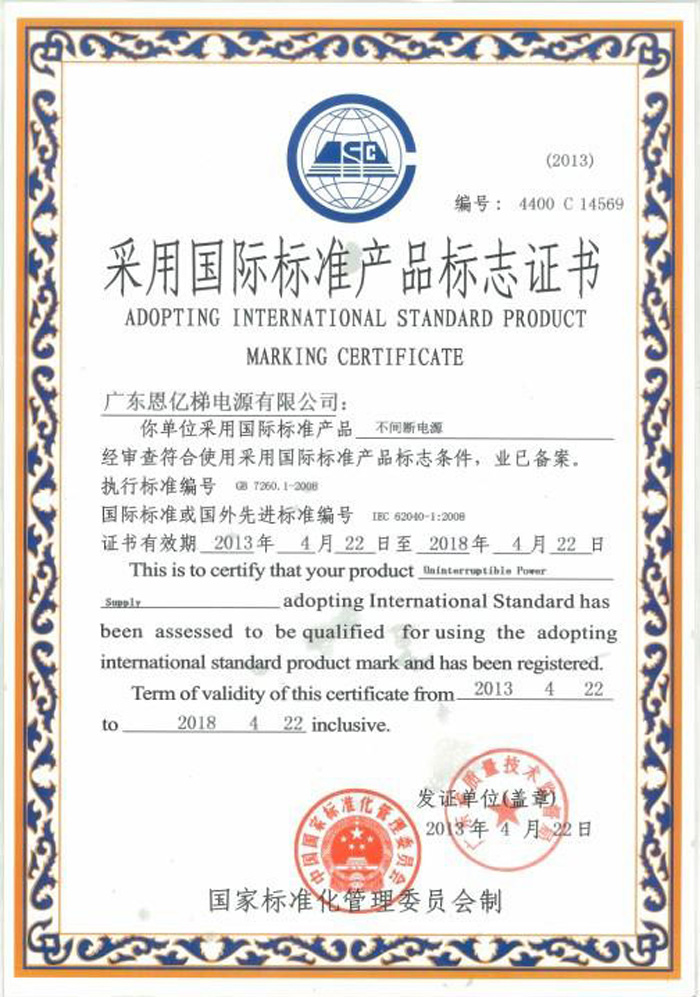 采用國際標(biāo)準(zhǔn)產(chǎn)品標(biāo)志證書