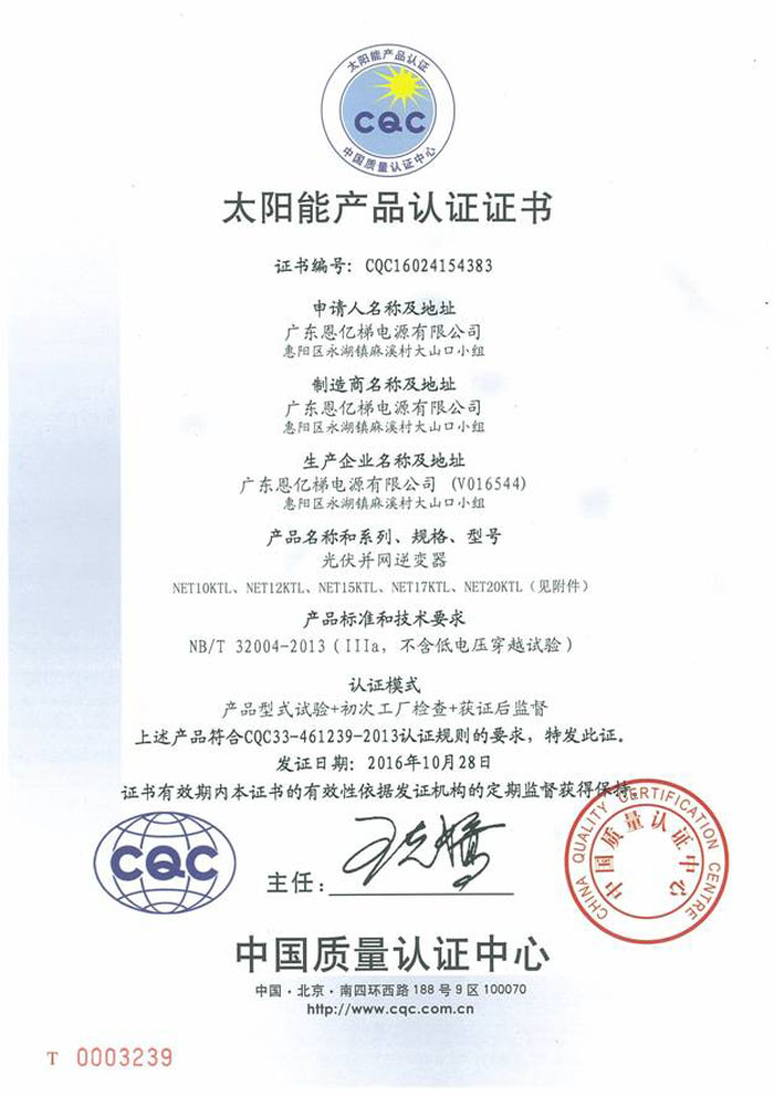 金太陽能產(chǎn)品認證(光伏逆變器)