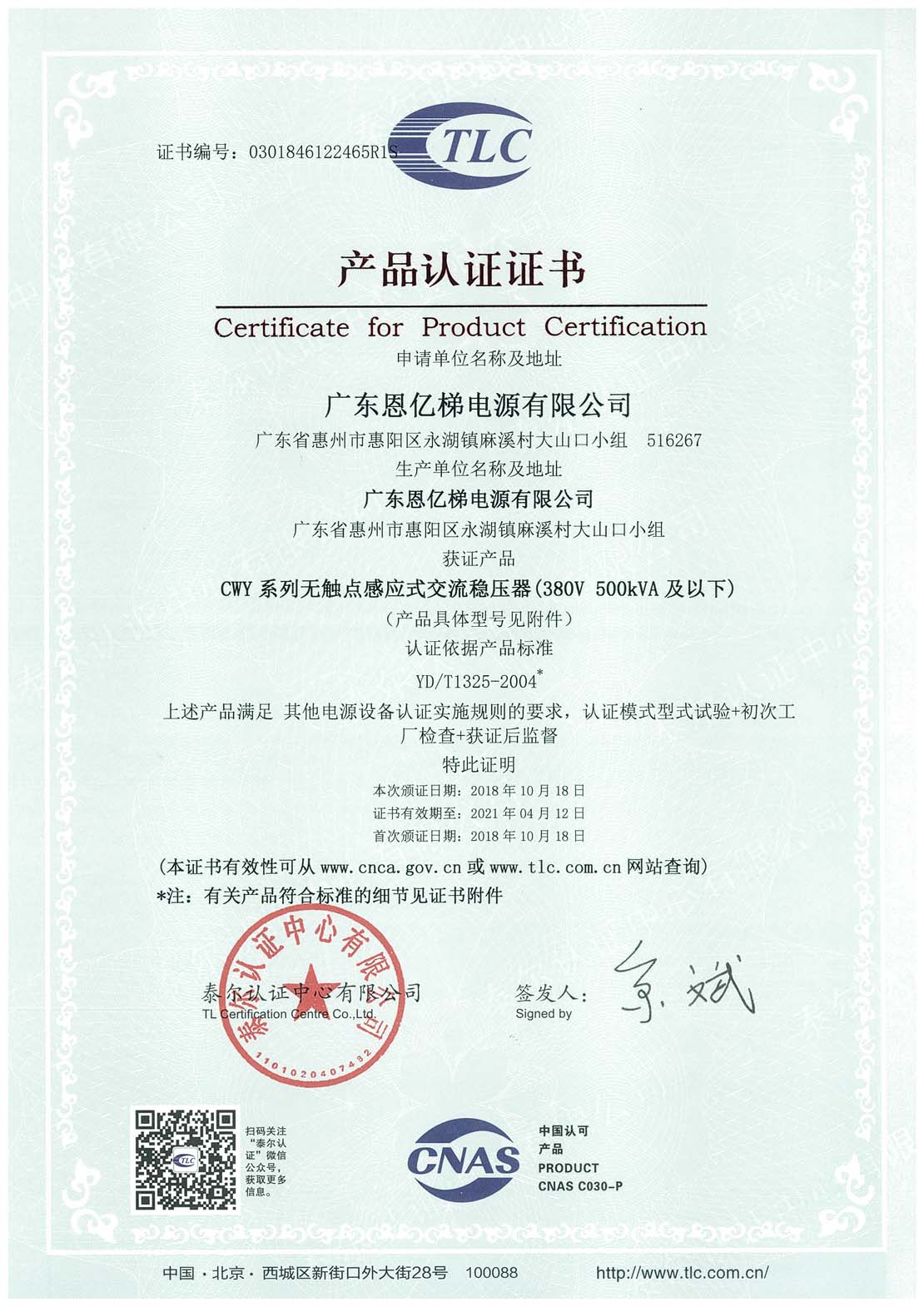 泰爾認(rèn)證(無(wú)觸點(diǎn)感應(yīng)式交流穩(wěn)壓器)